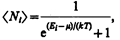 где á Ni ñ — среднее число фермионов в квантовом состоянии с энергией Еi, m — химический потенциал. В отличие от (235.1) m может иметь положительное значение (это не приводит к отрицательным значениям чисел á Ni ñ). Это распределение называется распределением Ферми — Дирака.