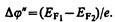 При определенной толщине p-n -перехода наступает равновесное состояние, характеризуемое выравниванием уровней Ферми для обоих полупроводников (рис. 336, в). В области p-n- перехода энергетические зоны искривляются, в результате чего возникают потенциальные барьеры как для электронов, так и для дырок. Высота потенциального барьера еj определяется первоначальной разностью положений уровня Ферми в обоих полупроводниках. Все энергетические уровни акцепторного полупроводника подняты относительно уровней донорного полупроводника на высоту, равную еj, причем подъем происходит на толщине двойного слоя d.