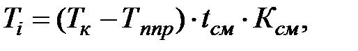 где Тк – календарный фонд времени, 365 дней; Тппр – простои в планово-предупредительном ремонте, дни; tсм - продолжительность смены, ч; Ксм – число смен в сутки.