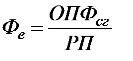 • "фондоемкость" (Фе) - показывает величину основных производственных фондов, приходящуюся на один рубль товарной или реализованной продукции. Фондоемкость по отношению к реализованной продукции (РП) определяется: