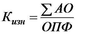 где ∑ АО - сумма начисленных амортизационных отчислений на момент расчета со дня ввода фондов в эксплуатацию, руб.; ОПФ - стоимость основных фондов на момент исчисления коэффициента, руб.
