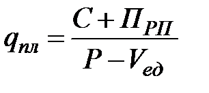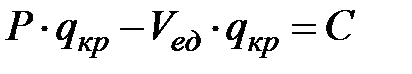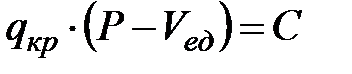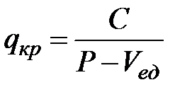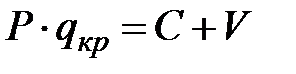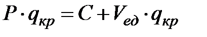 Выразим выручку от реализации через цену на единицу продукции (Р) и критический объем продаж (qкр), а сумму переменных затрат в составе себестоимости, зависимых от объема продукции, через удельную величину (Vед.) и критический объем продаж: