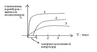 В индукционный период расходуется ингибитор бензохинон, а по исчерпанию его, полимеризация начинает идти с обычной скоростью.