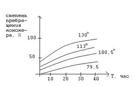 С увеличением температуры увеличивается суммарная скорость полимеризации, уменьшается степень полимеризации, а, следовательно, и молекулярная масса.