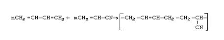 Сополимеризация – процесс образования сополимеров совместной полимеризацией двух или нескольких различных по природе мономеров. Этим методом получают ВМС с широким диапазоном физических и химических свойств. Например, в результате сополимеризации бутадиена с акрилонитрилом образуется бутадиен-нитрильный каучук (СКН), обладающий высокой стойкостью к маслам и бензинам. Из него изготавливают уплотнительные прокладки для деталей, соприкасающихся с маслами и растворителями: