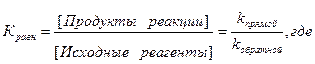 Константа равновесия равна отношению концентрации продуктов реакции к концентрации исходных реагентов.