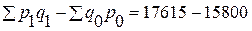 характеризует сумму дополнительных затрат покупателей (дополнительного товарооборота продавцов), обусловленных ростом цен на 16,6%, которая составляет 2505 у.е. (17615-15110).