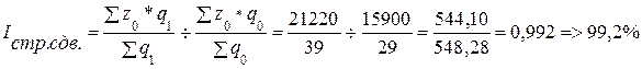Индекс себестоимости продукции структурных сдвигов рассчитывается по формуле: