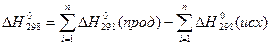 равен сумме стандартных теплот образования продуктов реакции за вычетом стандартных теплот образования исходных веществ: