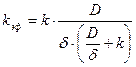 Для быстрой реакции, когда k>>D/d скорость процесса определяется диффузией. В случае медленной реакции, когда k<<D/d, то скорость процесса определяется скоростью химической реакции. Можно вывести формулу для эффективной константы скорости процесса: