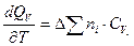 показывает изменение теплового эффекта реакции в зависимости от изменения температуры при постоянном объеме, где