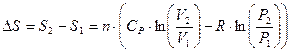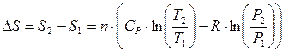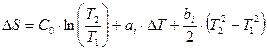 Изменение энтропии реальных веществ при нагревании при постоянном давлении для одного моля газа выражается зависимостью: