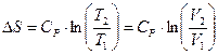 И тогда изменение энтропии при изменении температуры, давления или объема можно рассчитать по следующим формулам:
