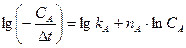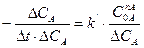В случае, когда ∆t →0 изменение концентрации вещества А -∆СА можно считать постоянным и тогда получаем следующее выражение:
