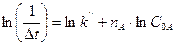 Рис. 4 Полулогарифмическая зависимость Ln(1/∆t) от lnCA
