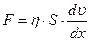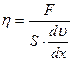 где F – внешняя сила, прилагаемая к слою жидкости площадью S, Н; η - коэффициент динамической вязкости или просто вязкость – сила, которую необходимо приложить к слою жидкости площадью S, чтобы сообщить ей скорость в 1 м/с по отношению к другому, параллельному слою, отстоящему от него на расстоянии 1 м, Н·с/м2 = Па·с = П (1 Пуаз, причем 1 Па·с = 10 П); S – площадь смещающегося слоя, м2;