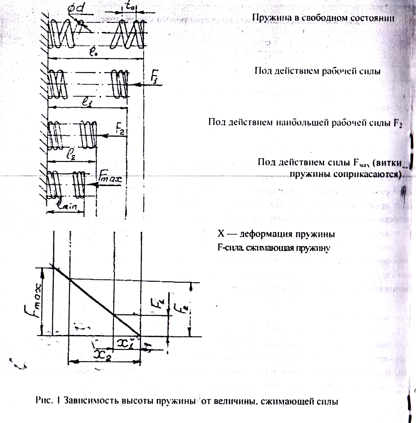 На рис. 1 показана пружина высотой в свободном состоянии, средний диаметр пружины Д. Для обеспечения продольной устойчивости (2.5-3) Д. При большей высоте применяют направляющие стержни или гильзы.