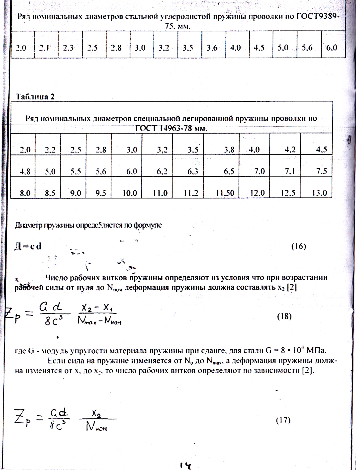 где d - диаметр проволоки, мм: F2 - наибольшая рабочая сила, действующая на пружину.