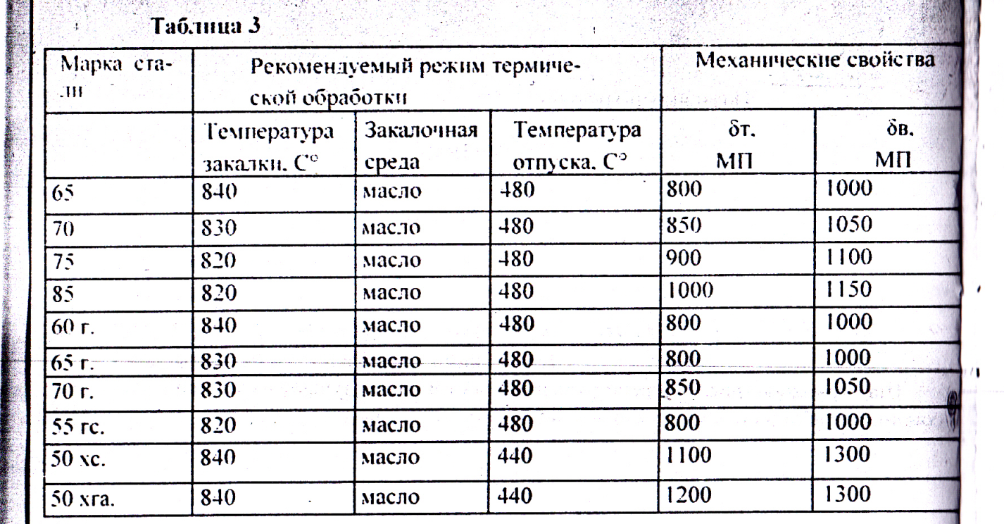 Материал пружины выбирается по табл. 3