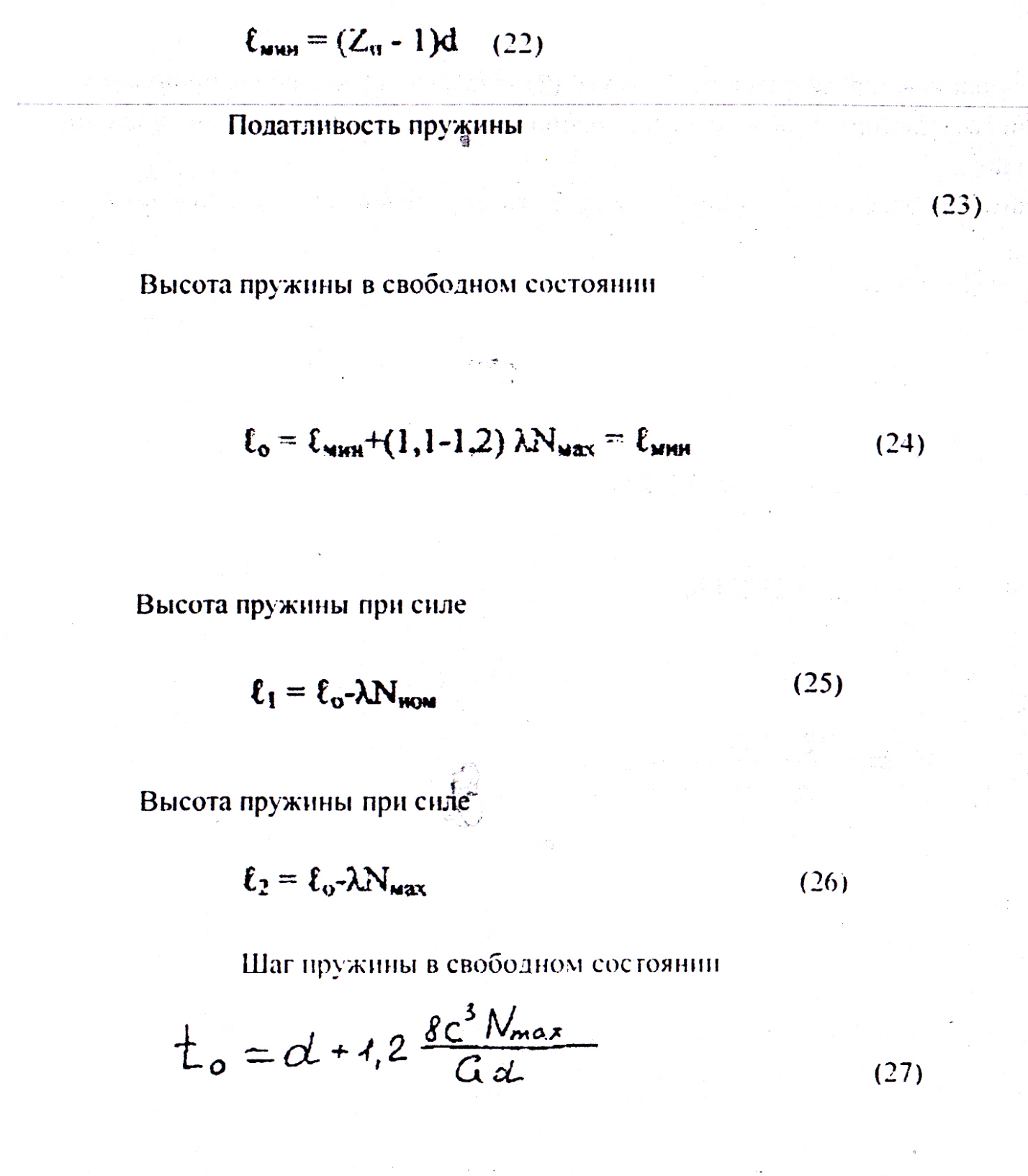 Н:- индекс пру жины: Д - средний диаметр пружины,