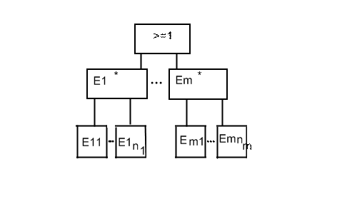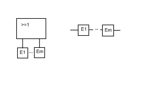 Параллельно соединенные компоненты E i (i = 1, 2,…, m), образующие подсистему «И», представляют собой подсистемы «ИЛИ», состоящие из последовательно соединенных компонентов E j (j = 1, 2,…, n).