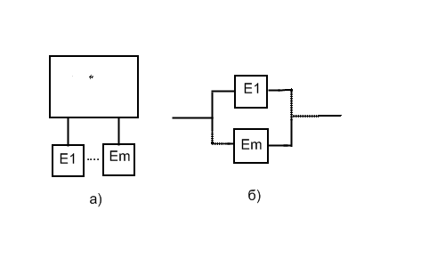Последовательно соединенные компоненты E i (i =1, 2,…, m), образующие подсистему «ИЛИ», представляют собой подсистемы «И» из параллельно соединенных компонентов E j (j =1, 2,…, n).