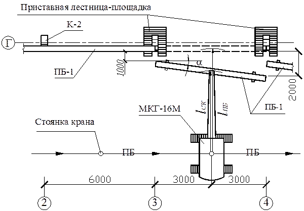 Рисунок 4.4.16 - Схема монтажа подкрановых балок поворотом стрелы крана