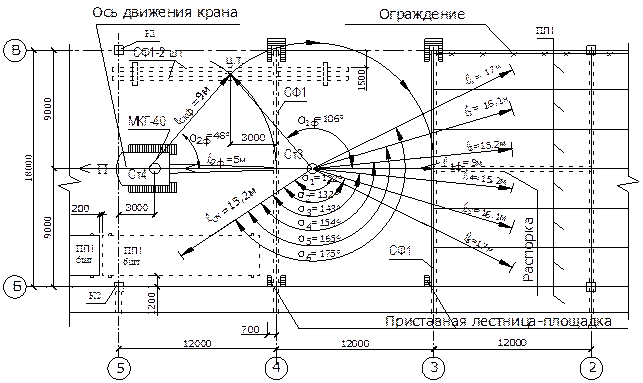 Рисунок 4.4.18 - Схема монтажа подкрановых балок изменением вылета стрелы