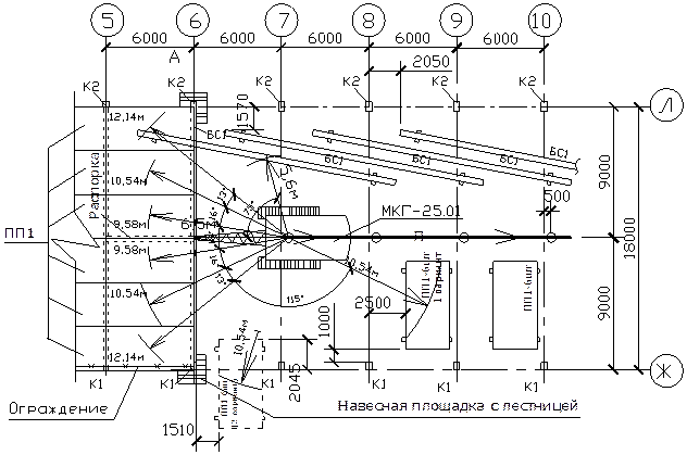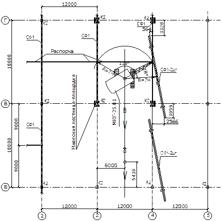 При пролете 18 м (рис.4.4.20) стропильные конструкции и плиты покрытия располагаются вдоль пролета по разные стороны относительно крана.