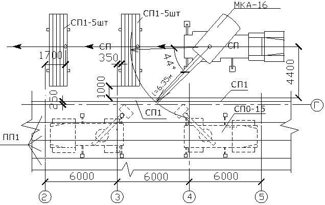 - с движением крана вдоль каждого продольного ряда конструкций (см. рис. 4.4.12, 4.4.13, 4.4.16) в случае, если: