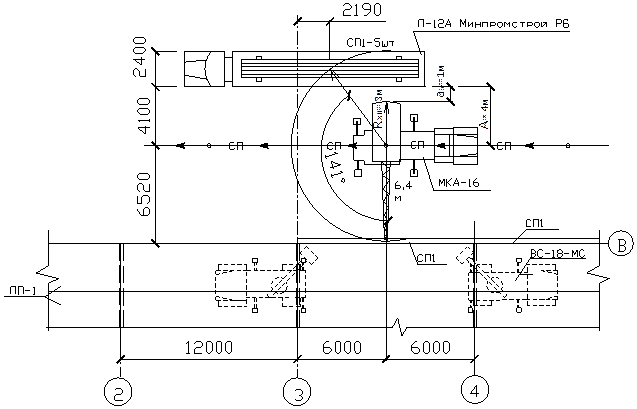 В случае монтажа конструкций с транспортных средств (рис.4.4.29) последние должны располагаться от крана на расстоянии А, принимаемом по выражению: