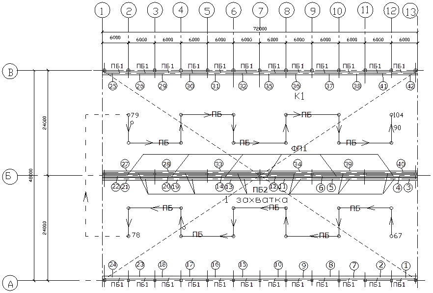 Рисунок 4.5.1. Порядок монтажа подкрановых балок ПБ1,2 и подстропильных ферм ФП1 на 1 захватке