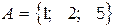 Пример 1. Множество, состоящее из элементов 1,2,5: