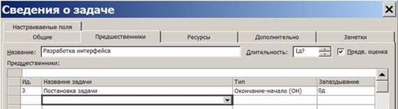 Рисунок 3 - Вкладка Предшественники окна сведений о задаче
