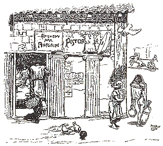 Рис. 1. Вариант реконструкции хлебной лавки в античном городе Помпеи. Между колоннами вариант album — специально выделенного места для письменных объявлений жителей города и окрестностей