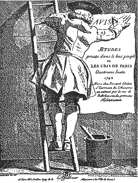 Рис. 16. Расклейщик афиш на улицах Парижа в предреволюционный период