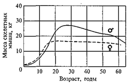 Рис. 34. Возрастные изменения массы скелетных мышц