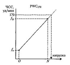 Для детей и подростков школьного возраста определение PWC170 может быть несколько упрощено за счет того, что вместо двух нагрузок допустимо задавать лишь одну, но обязательно, чтобы частота пульса при этом достигала 140 уд/мин или более. Тогда второй точкой на графике можно отмечать значение пульса покоя. У дошкольников моложе 6 лет корректное измерение величины PWCI70 невозможно, поскольку они не могут поддерживать устойчивое состояние активности своих вегетативных функций.
