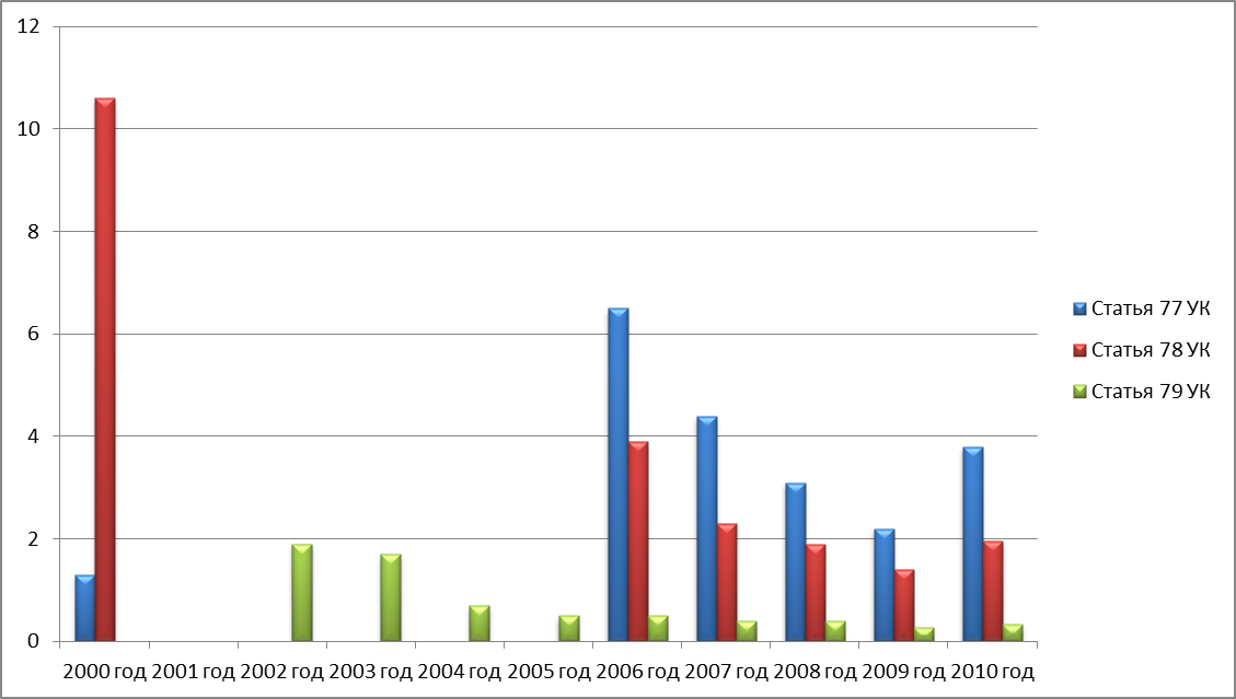 | Статья 79 УК | (1,9%) | (1,7%) | (0,7%) | (0,5%) | (0,5%) | (0,4%) | (0,4%) | (0,28%) | (0,33%) |