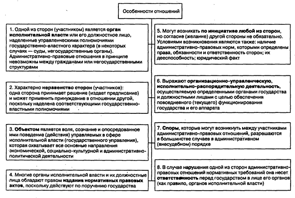 Схема 7. Особенности административно-правовых отношений