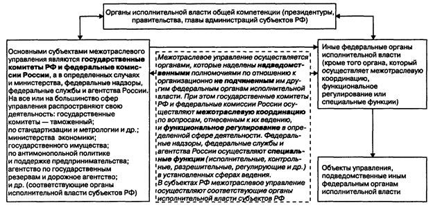 В субъектах Федерации межотраслевое управление осуществляют их соответствующие органы исполнительной власти.