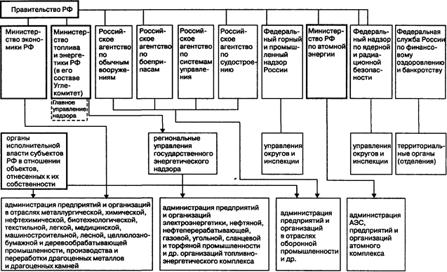 Значительная часть федерального бюджета (42%) формируется за счет поступлений от организаций топливно-энергетического комплекса, основная деятельность которых связана с производством электрической, тепловой энергии, добычей и транспортировкой природного газа, нефти и нефтепродуктов. Поэтому государство уделяет особое внимание обеспечению бесперебойной работы этих организаций, совершенствованию системы управления топливно-энергетическим комплексом, сбережению энергоресурсов. Это нашло отражение в частности, в Федеральном законе от 31 марта 1999 г. «О газоснабжении в Российской Федерации»*, постановлениях Правительства от 20 ноября 1997 г. «О совершенствовании управления угольной промышленностью»**, от 5 июля 1999 г. «Об обеспечении надежного энергоснабжения стратегических организаций»*** и правительственной программе «Энергоснабжение России в 1998 — 2005 годах»****.