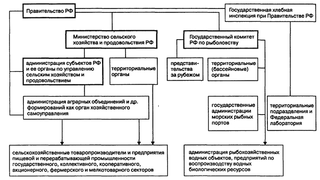 Министерство сельского хозяйства и продовольствия Российской Федерации (Минсельхозпрод России) является федеральным органом исполнительной власти, проводящим государственную политику и осуществляющим управление в сфере агропромышленного комплекса и продовольственного обеспечения страны, а также координирующим деятельность в этой сфере других федеральных органов исполнительной власти в случаях, установленных федеральными законами, указами Президента и постановлениями. Правительства. Оно имеет свои территориальные органы. Положение о нем утверждено постановлением Правительства от 11 сентября 1998 г.*