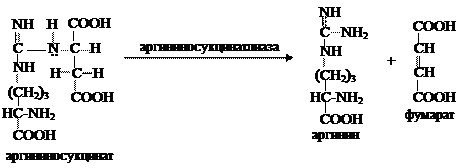 Аргининосукцинат из-за наличия сильно поляризованных связей довольно легко разрушается с помощью аргининосукцинатлиазы:
