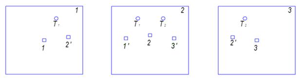 Подготовленные таким образом снимки укладывают последовательно один на другой так, чтобы отверстия на вспомогательных точках Т1 и Т2 совпадали, а несовмещения на вспомогательных точках отверстий были направлены по начальному направлению. Обрезку снимков по данному способу выполняют по кривым или ломанным линиям. Отрезанные средние части снимков наклеивают безводным клеем на плотную подложку. Качество монтажа фотосхемы оценивают с помощью обрезков с целью выявления наличия вырезанных и дублирующих участков изображения.