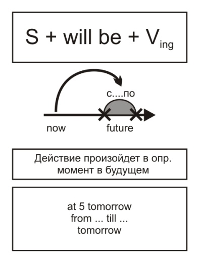□ The Future Continuous Tense преобразуется в the Future in the Past Continuous Tense: