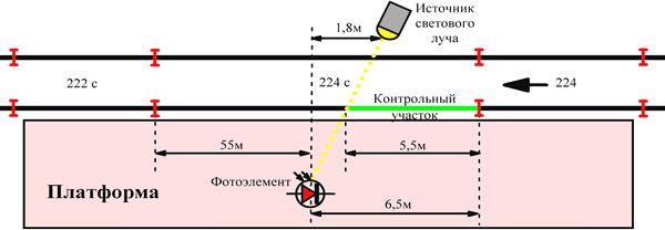 Принцип его действия основан на контроле за временем прохождения хвостовым вагоном контрольного участка пути. Контроль прохождения поезда осуществляется при помощи светового луча и приёмника (фотоэлемента). Источник светового луча загорается при занятии одной из рельсовых цепей: 222с, 224с или 224. После освобождения последней колёсной парой рельсовой цепи № 224 начинается отсчёт времени проследования контрольного участка. Если хвостовой вагон пройдёт контрольный участок и фотоэлемент сработает ранее, чем через 1 с., то на входном светофоре, ограждающим цепь №224с, включится разрешающее показание ещё до полного освобождения поездом данной рельсовой цепи. Если же хвостовой вагон проходит контрольный участок более, чем за 1с., то внепоездной контроль не сработает и разрешающее показание светофора включится только после полного освобождения поездом данной рельсовой цепи. После освобождения поездом цепи №222с схема возвращается в исходное состояние.