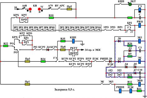 При фиксации устройствами АРС факта превышения скорости обесточиваются оба КСР, контакты которых разрывают цепь питания ЭК и ЭК1, но катушки этих реле продолжают получать питание в течение 3,3 секунд от конденсатора С3, который предварительно был заряжен.