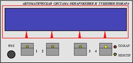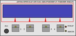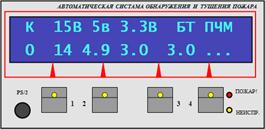 При включении выключателя батареи, системы АСОТП и СКТБ проводят самотестирование с выводом на ЦБКИ индикации (рис. 51). Примерно через 0,5 с загораются одновременно красный светодиод «ПОЖАР» и жёлтый светодиод «НЕИСПРАВНОСТЬ».