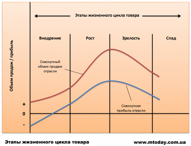 Достаточно сложно определить, где кончается одна стадия и начинается другая, поэтому определенную стадию принято различать по ярко-выраженным показателям каждой стадии, т. е. когда, например, увеличивается либо уменьшается объем сбыта, прибыли и т. д.